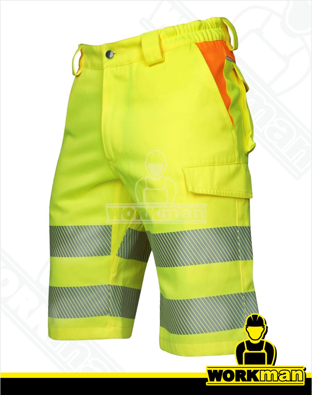 Popis: Montérkové kraťasy. Vďaka ergonomicky tvarovanému štíhlemu strihu skvele padnú. Pevná keprová tkanina má výborné mechanické vlastnosti a vysokú odolnosť v ťahu a proti pretrhnutiu. Pružný pásový golier s integrovanou gumou zvyšuje komfort nosenia. 2 predné vrecká, 2 zadné vrecká kryté pätkami. Veľká vrecko na ľavej nohavici krytá pätkou. Na pravej nohavici vrecko na skladací meter, skrutkovač atď. Reflexné paspule na zadnom diele pre vyššiu viditeľnosť. 2 segmentované reflexné pásky na prednom dieli, 2 na zadnom diele.