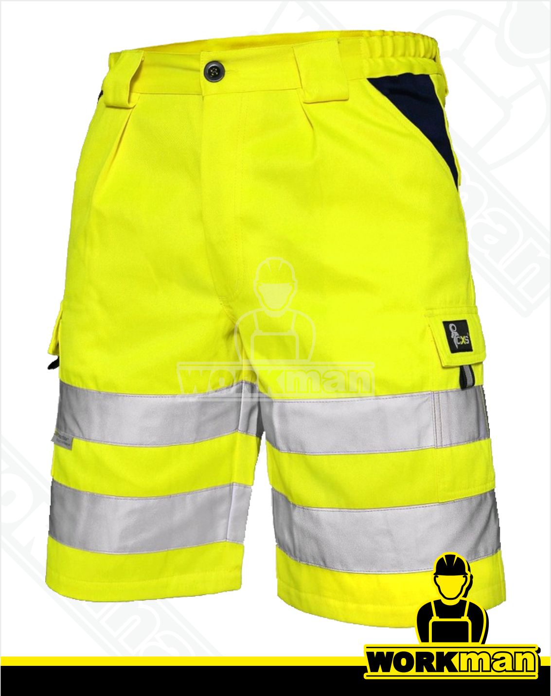 Popis: Pánske výstražné montérkové kraťasy. Pás s pútkami na opasok a gumou v bokoch. Predné klinové vrecká, zadné vrecká s príklopkou na suchý zips. Bočné vrecká s klopou na suchý zips, ľavá bočné vrecko rozdelená na dve komory. Reflexné pruhy 3M.