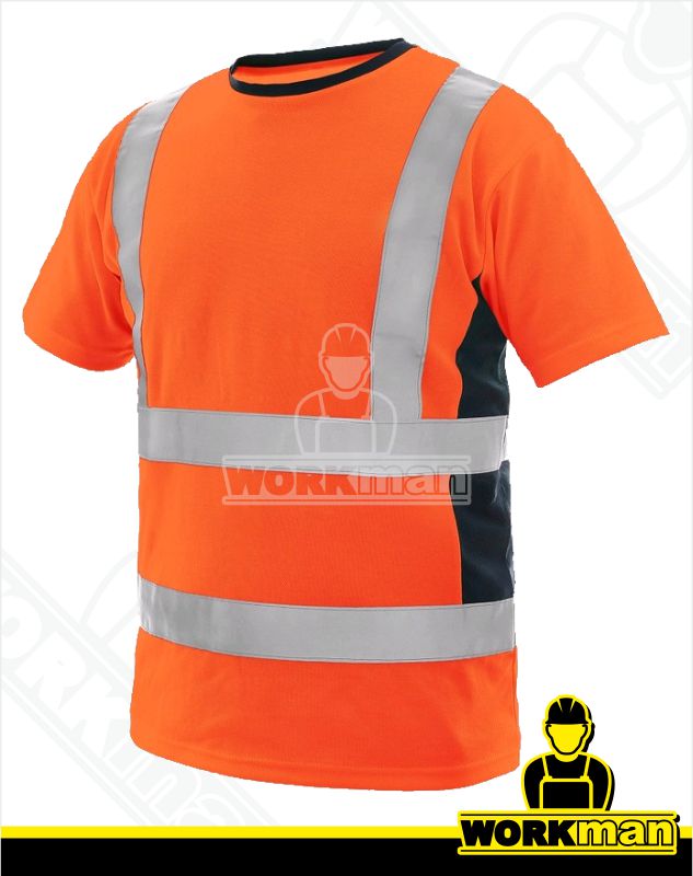 Kompletné špecifikácie Reflexné polobavlnené tričko EXETER Cxs Popis: Výstražné žlté tričko s okrúhlym výstrihom v kontrastnej modrej farbe, krátky rukáv, reflexné pruhy: 2 horizontálne, 2 vertikálne (šírka 5 cm), po stranách panely zo sieťoviny v modrej farbe. - vetranie po bokoch (v tmavomodrej ča... celý popis