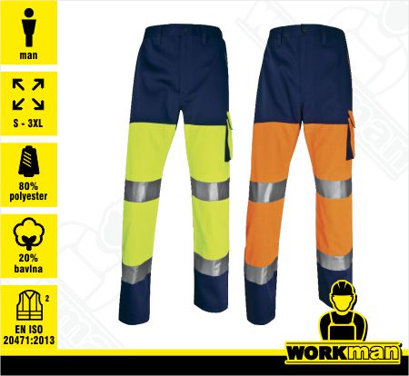 Popis: Pracovné nohavice (pevná montérkovina - kvalitná). Sťahovanie v páse a po stranách. Trieda reflexnosti: 2 - strieborná farba. 5 vreciek vrátane 1 na pravítko.