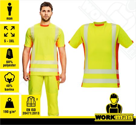 Popis: Pánske tričko v atraktívnom prevedení kombinácie 2 hi- vis farieb a modernými potlačenými reflexnými pruhmi.