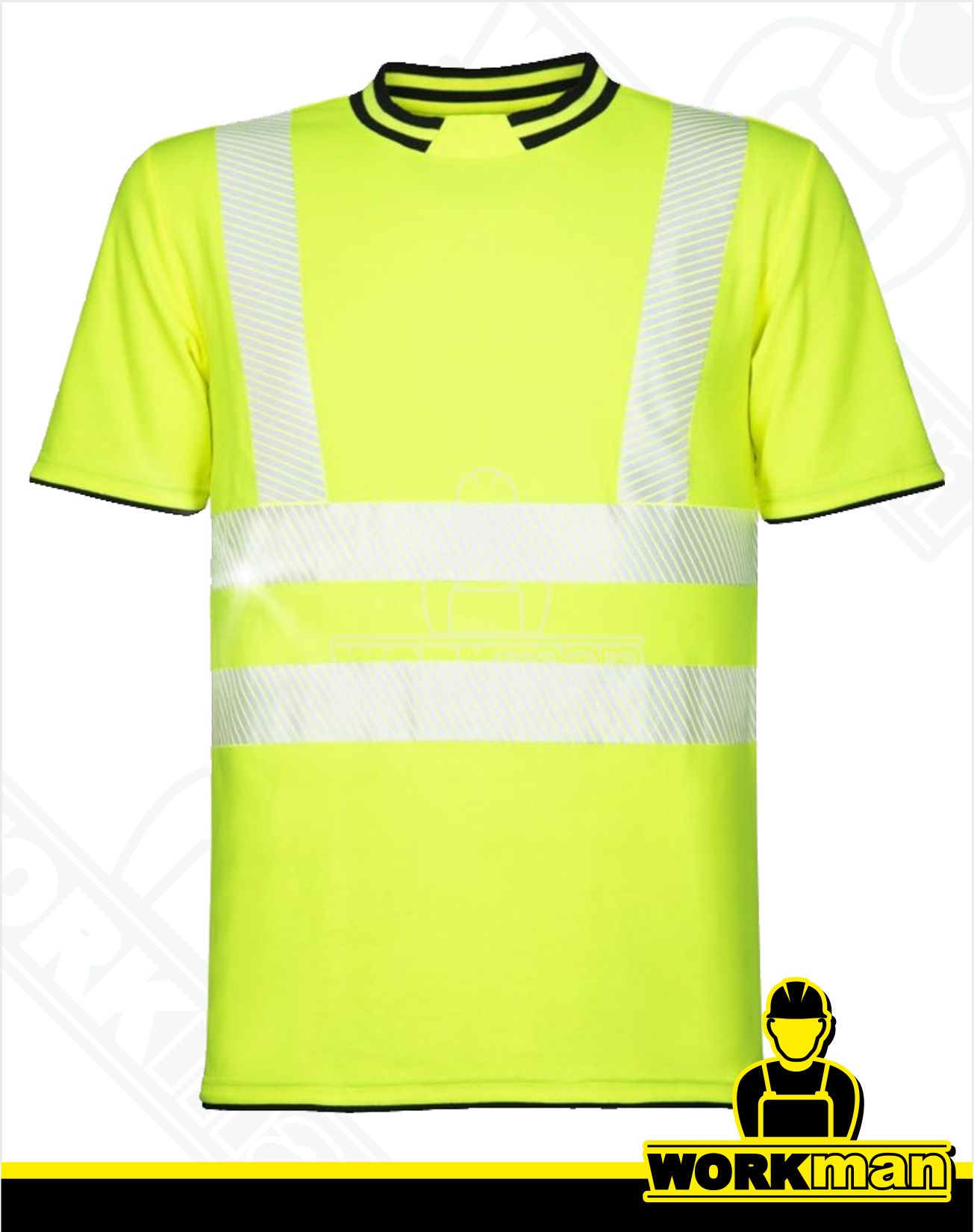 Popis: Výstražné tričko s krátkym rukávom je vyrobené z materiálu s vysokým podielom bavlny. Tričko pôsobí príjemne na dotyk, je možné ho nosiť priamo na tele bez spodnej deliacej vrstvy. Dobre odvádza pot, je dobre priedušné. Látka sa tiež pružne prispôsobí pohybu, neobmedzuje a ani vo švíkoch netlačia. Tričko je vyrobené s prihliadnutím na výkon práce vo vysoko zaťaženom prostredí. Polyester s bavlnou vo zmesový materiál zvyšuje odolnosť tričká. Tričko sa ľahko udržiava a ani pri častom nosení a praní oblečenie nestráca farebnú a tvarovú stálosť. Pevnosť oblečenie podporujú tiež zdvojené lemy. Výstražné tričko spĺňa výberom materiálov i spracovaním normu EN 20471 a dosahuje triedy 2. Je dostupné v bežnej konfekčnej rade vo veľkostiach S až 4XL.