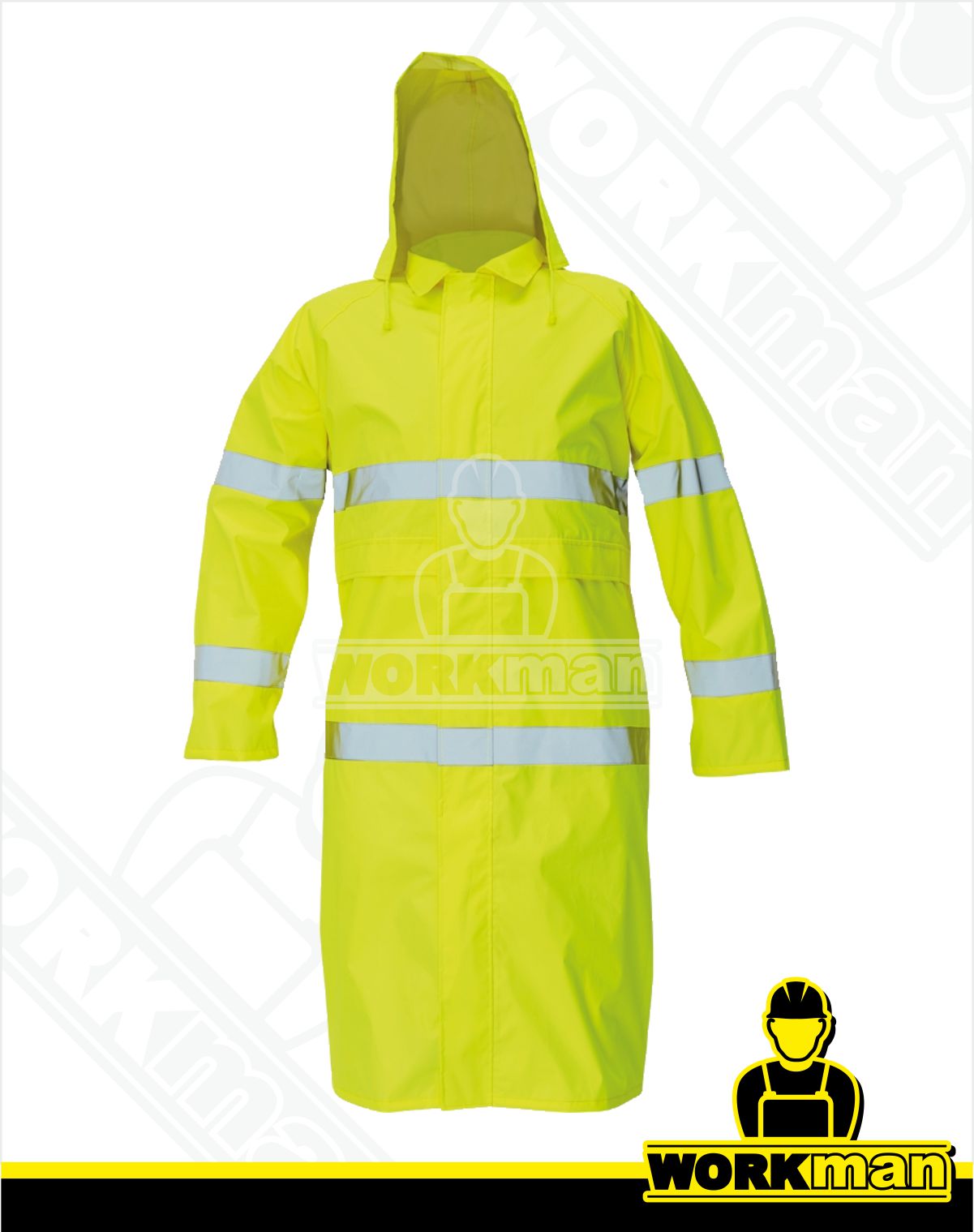 - Hi-vis nepremokavý ľahký plášť s kapucňou a reflexnými pruhmi