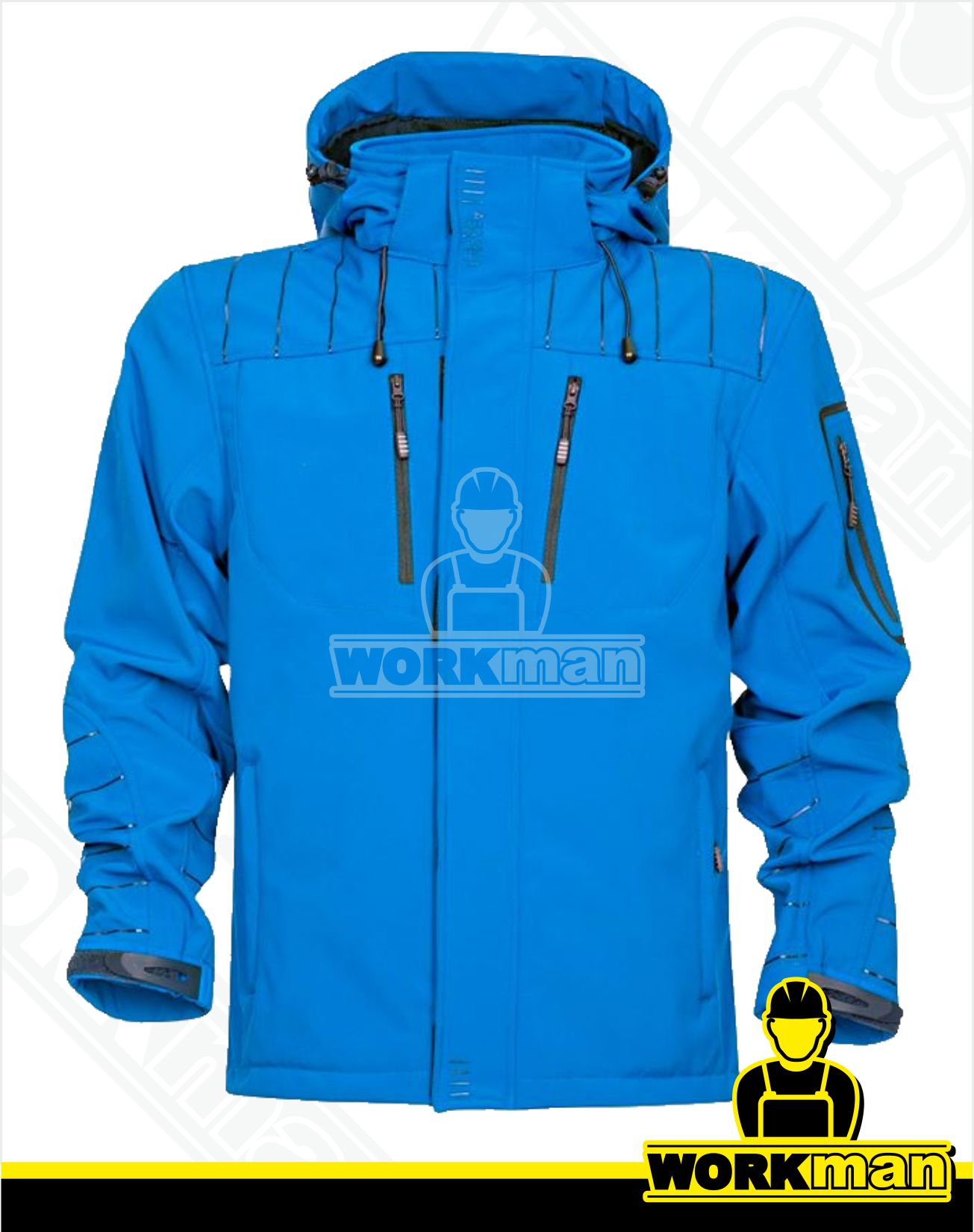 Popis: Luxusná pánska softshellová bunda s dekoratívnou potlačou na sedle a rukávoch. Modré doplnky. Vodoodolnosť 10 000 mm, priedušnosť 800 mm. Odnímateľná kapucňa so sťahovaním pomocou stoperov. Zapínanie na zips krytý légou na suchý zips. 4 vrecká na zips, vrecko na rukáve. Nastaviteľné rukávy pomocou suchých zipsov. Sťahovanie spodného lemu pomocou stoperov.