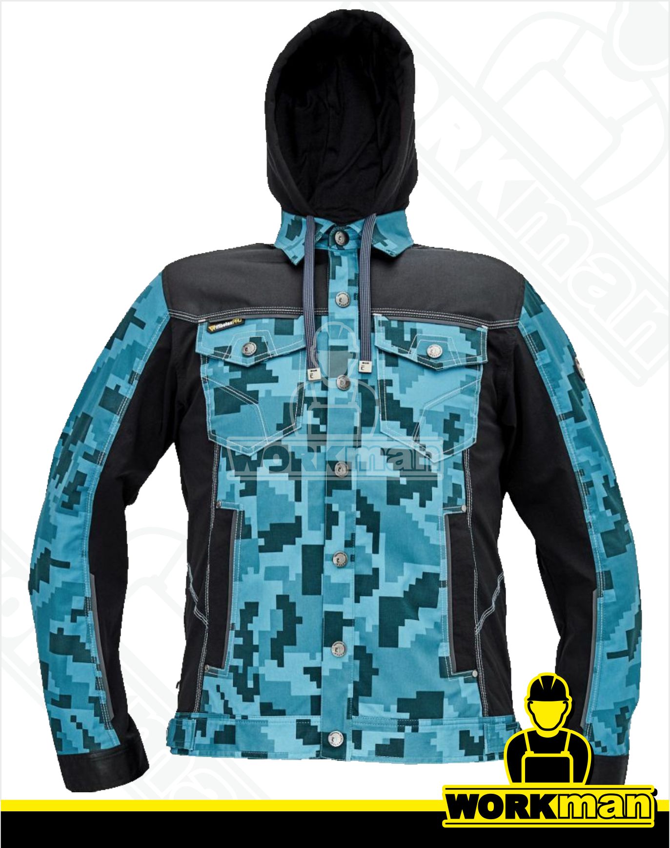 Popis: Pracovná bunda s odopínateľnou kapucňou v modernom maskáčovom vzore. Eelastický inovatívny materiál TRIFIBETEX v kombinácii s nylon TRIFIBETEX PRO, CORDURA zosilnení v oblasti ramien.