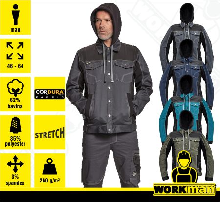 3. Strečová montérková bunda NEURUM CLASSIC s kapucňou Červa