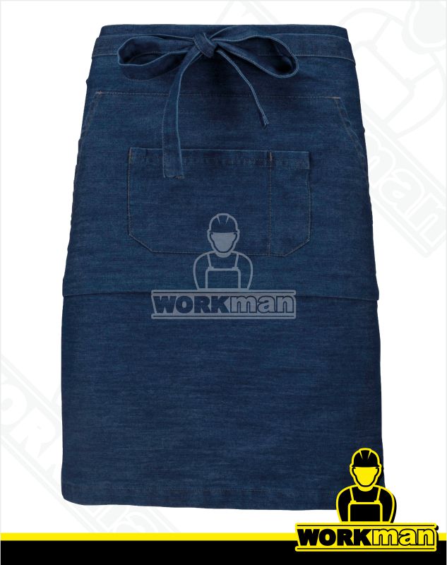Popis: Pracovná zástera, dvojité šitie, 2 vrecká: 1 klokanie vrecko a na nej našité 1 vrecko rozdelené na 2 priehradky. Džínsový efekt farby bol dosiahnutý špeciálnym ošetrením a vyzerá zámerne zostarne. Tento výrobný proces spôsobuje farebné rozdiely medzi výrobkami a robí každý kus jedinečným.