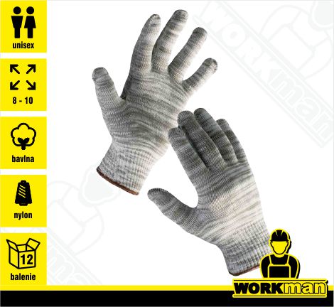 Popis: Pletené, bezšvové rukavice zo zmesi nylon/bavlna.