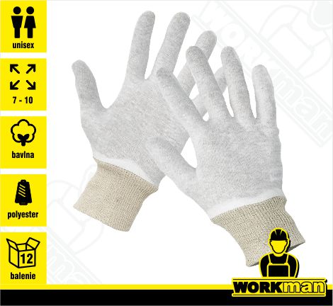 Popis: Rukavice šité z jemného bieleného bavlneného úpletu, s pružnou manžetou. Vhodné pre styk s potravinami.