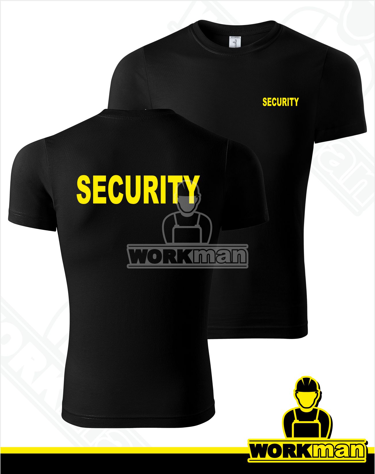 Tričko SECURITY 150g   Popis: Unisexové tričko nižšej gramáže. Lem priekrčníka z rebrového úpletu 1:1. Vnútorná časť zadného priekrčníka začistená páskou. Spevnený ramenný šev. Tubulárny strih. Odtrhávací label. Potlač: - veľký potlačený nápis SECURITY vzadu, 34x8cm - malý potlačený nápis SECURITY v... celý popis