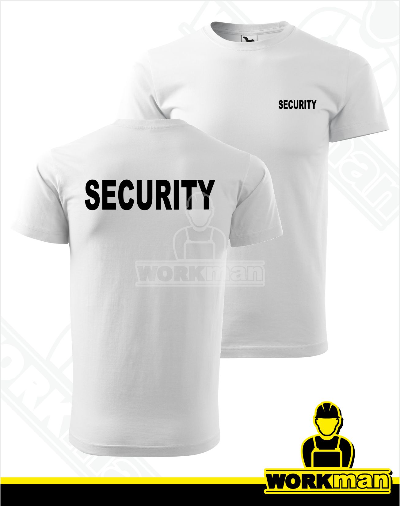 Kompletné špecifikácie Tričko SECURITY 200g Popis: Unisexové tričko vysokej gramáže. Úzky priekrčník s prídavkom 5 % elastanu. Spevňujúca ramenná páska. Trup po bokoch bez švov. Exkluzívny vzhľad vďaka finálnej silikónovej úprave. Potlač: - veľký potlačený nápis SECURITY vzadu, 34x8cm - malý potlače... celý popis