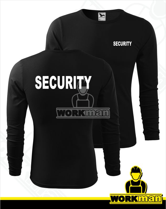 Kompletné špecifikácie Tričko dlhý rukáv SECURITY 160g Popis: Priliehavé pánske tričko s dlhým rukávom z hladkého úpletu. Módny úzky lem na krku vo farbe trička. Rukávy bez manžety. Strih s bočnými švami. Potlač: - veľký potlačený nápis SECURITY vzadu, 34x8cm - malý potlačený nápis SECURITY vpredu, ... celý popis