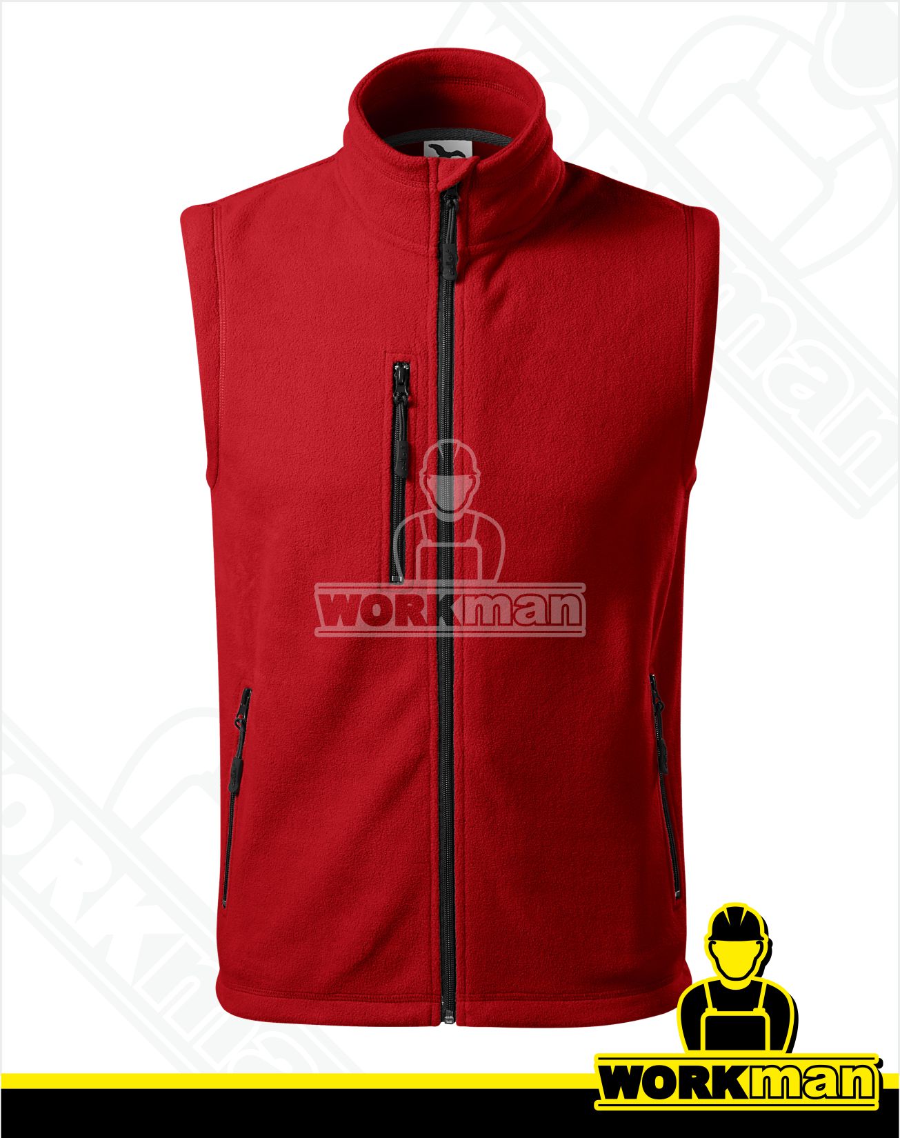 Popis: Celozapínacia fleecová vesta s kontrastnými detailami. 2 predné a 1 náprsné vrecko na zips. Stojačik s krytkou pre ochranu brady. Dekoratívne prešitie goliera, prieramkov a spodného lemu. Spodný lem k stiahnutiu elastickou šnúrkou. Antipilingová úprava vonkajšej strany materiálu.