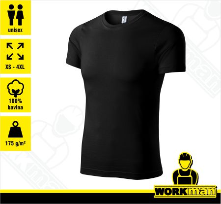 Popis: Unisexové tričko vyššej gramáže. Lem priekrčníka z rebrového úpletu 1:1. Vnútorná časť zadného priekrčníka začistená páskou. Spevnený ramenný šev. Tubulárny strih. Odtrhávací label.