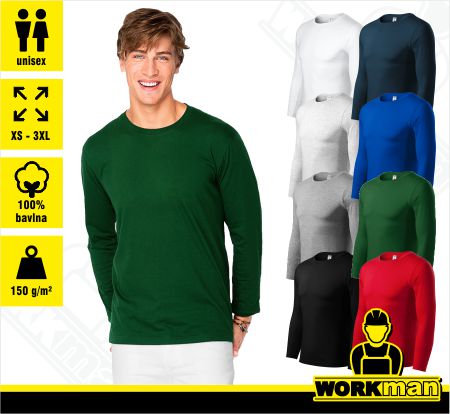 Popis: Unisexové tričko s dlhým rukávom nižšej gramáže. Lem priekrčníka z rebrového úpletu 1:1. Vnútorná časť zadného priekrčníka začistená páskou. Spevnený ramenný šev. Tubulárny strih. Odtrhávací label.