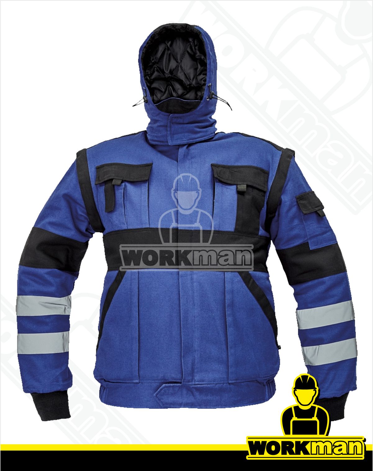 Popis: Inovovaná verzia obľúbenej zimnej bundy MAX doplnená o reflexné pruhy po obvode tela a na rukávoch. Bavlnená zateplená bunda s kapucňou na zips a odopínateľnými rukávmi. Príjemný priedušný nešustivý materiál vhodný na celodenné nosenie. Hlboké multifunkčné vrecká pre všestranné použitie. Bunda je vhodná pre prácu aj v mínusových teplotách.
