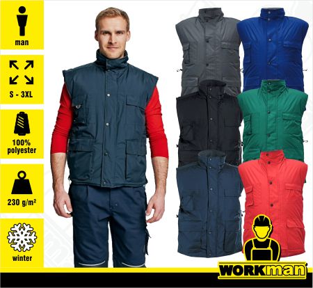 Kompletné špecifikácie Zateplená pracovná vesta BEAVER Červa Popis: Zateplená nepremokavá vesta (prispôsobená strojovému vyšívaniu) s podšívkou a so zipsom, sťahovacia šnúrka v páse. Farba: sivá, tmavomodrá, kráľovská modrá, čierna, zelená, červená,  Veľkosť: S, M, L, XL, 2XL, 3XL Materál: 100 % pol... celý popis