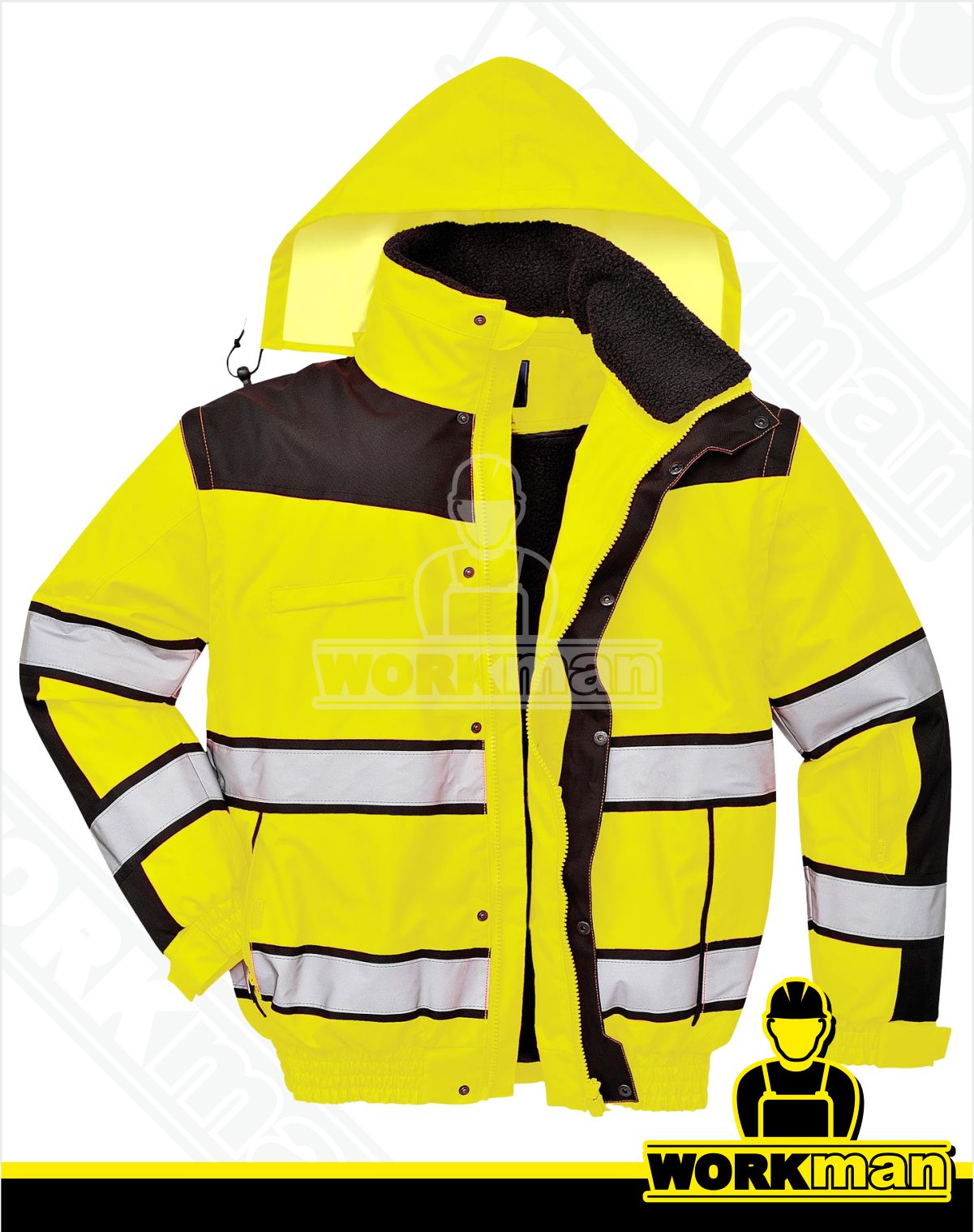 Kompletné špecifikácie Zateplená reflexná bunda Hi-Vis CLASSIC BOMBER C466 3v1 Portwest Popis: Nový neprehliadnuteľný strih vetrovky. Odnímateľná kožušinová vložka, odnímateľné rukávy a límec. Vhodná do každého počasia. Vrecko na menovku, vrecko na rukáve, kontrastné čierne panely. - Vhodná do všetk... celý popis