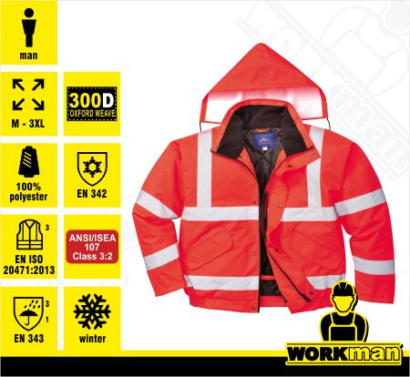 4. Zateplená reflexná bunda Hi-vis BOMBER RED S463 Portwest