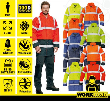Norma: EN ISO 20471:2013 trieda 3, EN 343:2003 + A1:2007 trieda 3:1, EN ISO 13688:2013