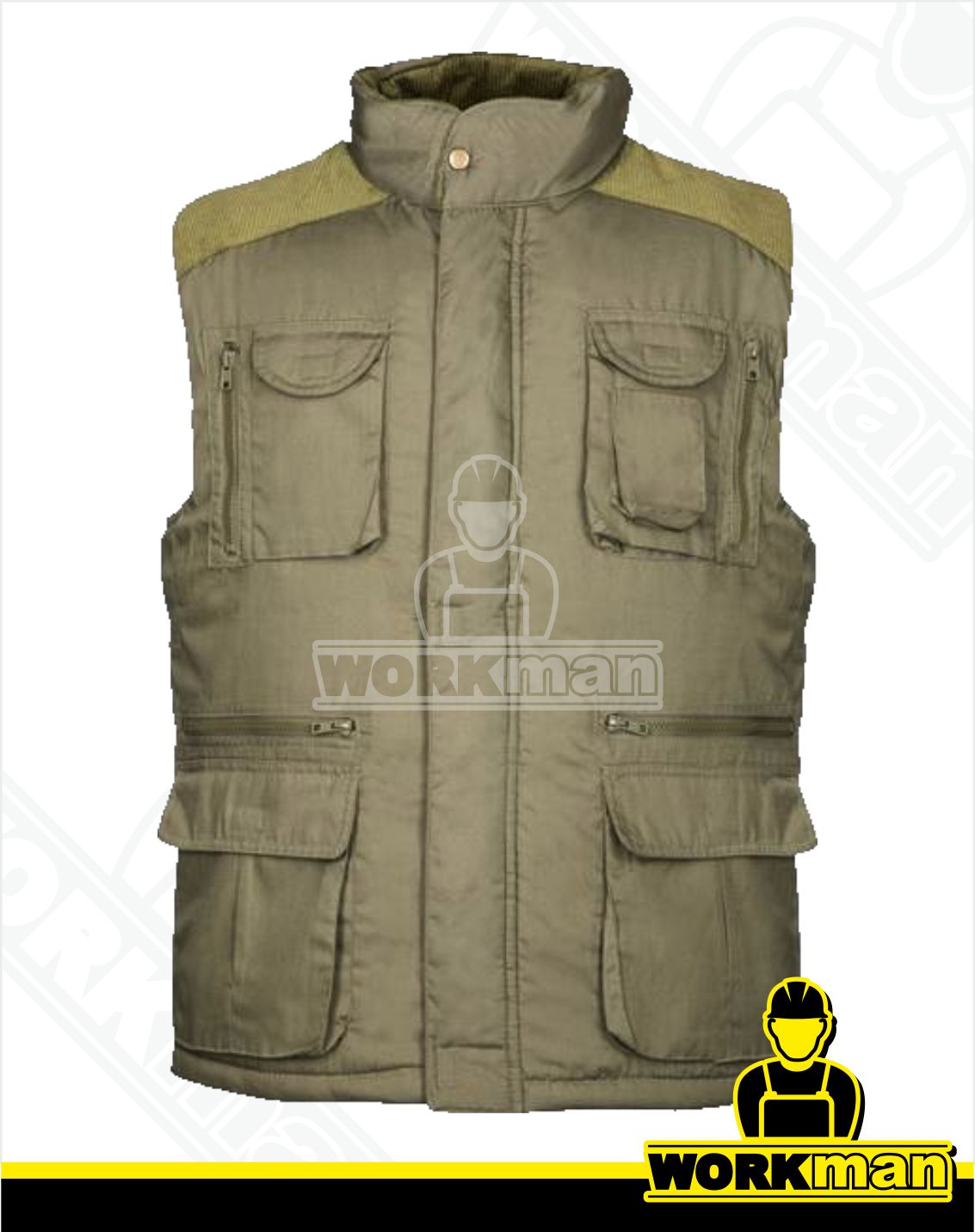 Popis: Klasická pracovná pánska vesta zo zmesového materiálu príjemná na nosenie. Zosilnené menčestrové sedlo. S nylonovou podšívkou a zateplením zo 100 % polyesteru. Multifunkčné vrecká na zips a na suchý zips.