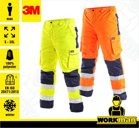 Popis: Výstražné, zateplené nohavice do pásu, odolné proti vode a vetru, 3M reflexné pruhy.