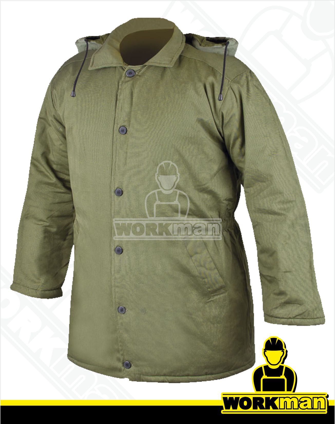 Popis: Tradičný vatovaný odev z impregnovaného plátna, 100% bavlny, 140 g/m². Vnútorný materiál zo 100 % bavlny. Kvalitné zateplenie. Kabát s golierom a zapínaním na gombíky, s odnímateľnou kapucňou a dvomi vreckami.