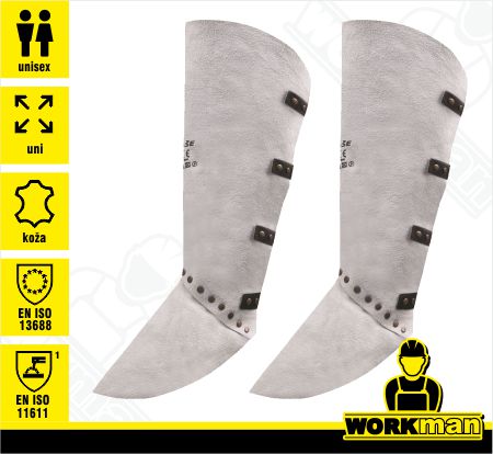Popis: Gamaše GAL vyhovujú náročným podmienkam pri zváraní materiálu v dielni aj prácu v teréne. Materiál aj uspôsobenie spĺňa normy EN 13688, EN 11611 A1. Sú dostupné v jednotnej šedej farbe v univerzálnej veľkosti. Špeciálny strih pridáva tvarovaná časť kože aj pre ochranu vrchnej časti obuvi. Gamaše tak chráni nielen spodnú časť nohy, ale aj priehlavky.
