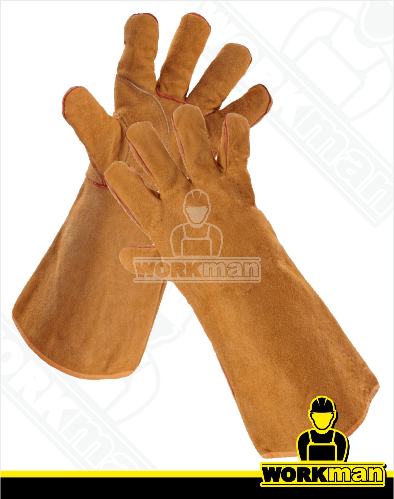 Popis: Kvalitné zváračské rukavice z hovädzej štiepenky. Kryyté švy prešité kevlárovou niťou s bavlnenou podšívkou. Celková dĺžka 41cm. Ceritifkované pre zváračov.